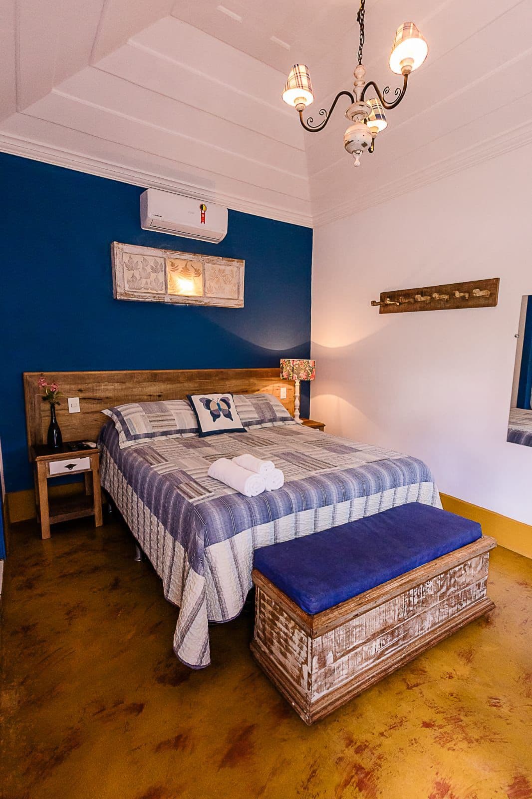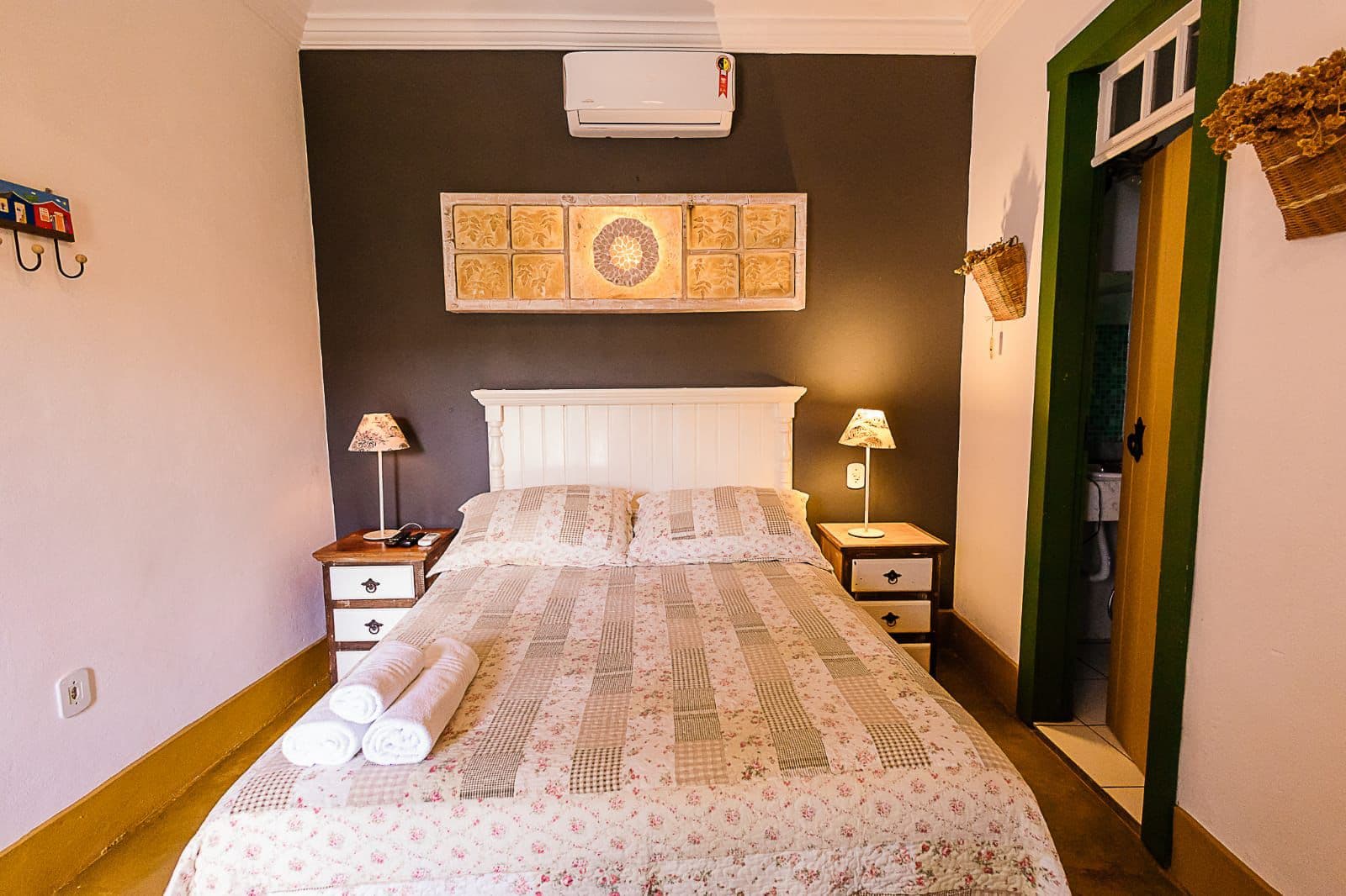 Essas confortáveis suítes possuem: TV, frigobar, banheiro privativo, secador de cabelo, banho com aquecimento e ar condicionado quente e frio.